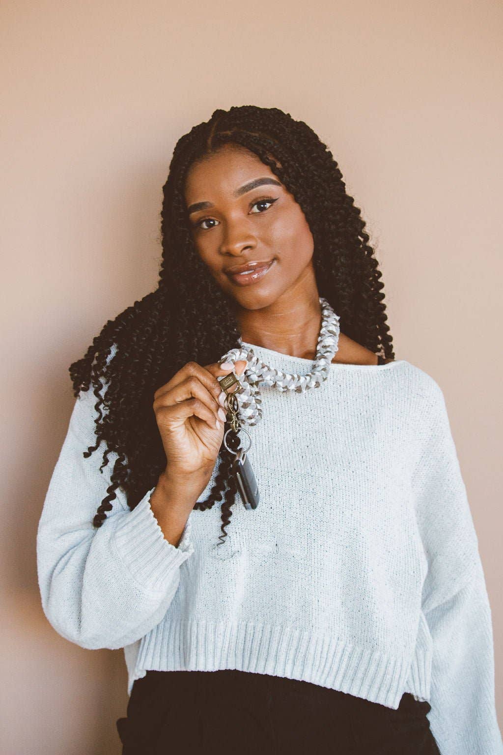 Shop Andi lanyards are the cutest you'll find! This is a brown and white, cotton fabric, featuring a checkered print. It's so cute!!! Get this to hold all your necessities and keep your pockets and hands free, while adding a cute and stylish flair.
