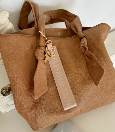 Sandstone Beige Oversized Logo Keychain- Elevated Faith