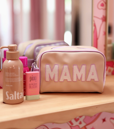 Handle Cosmetic Bag- 'mama' Embroidered