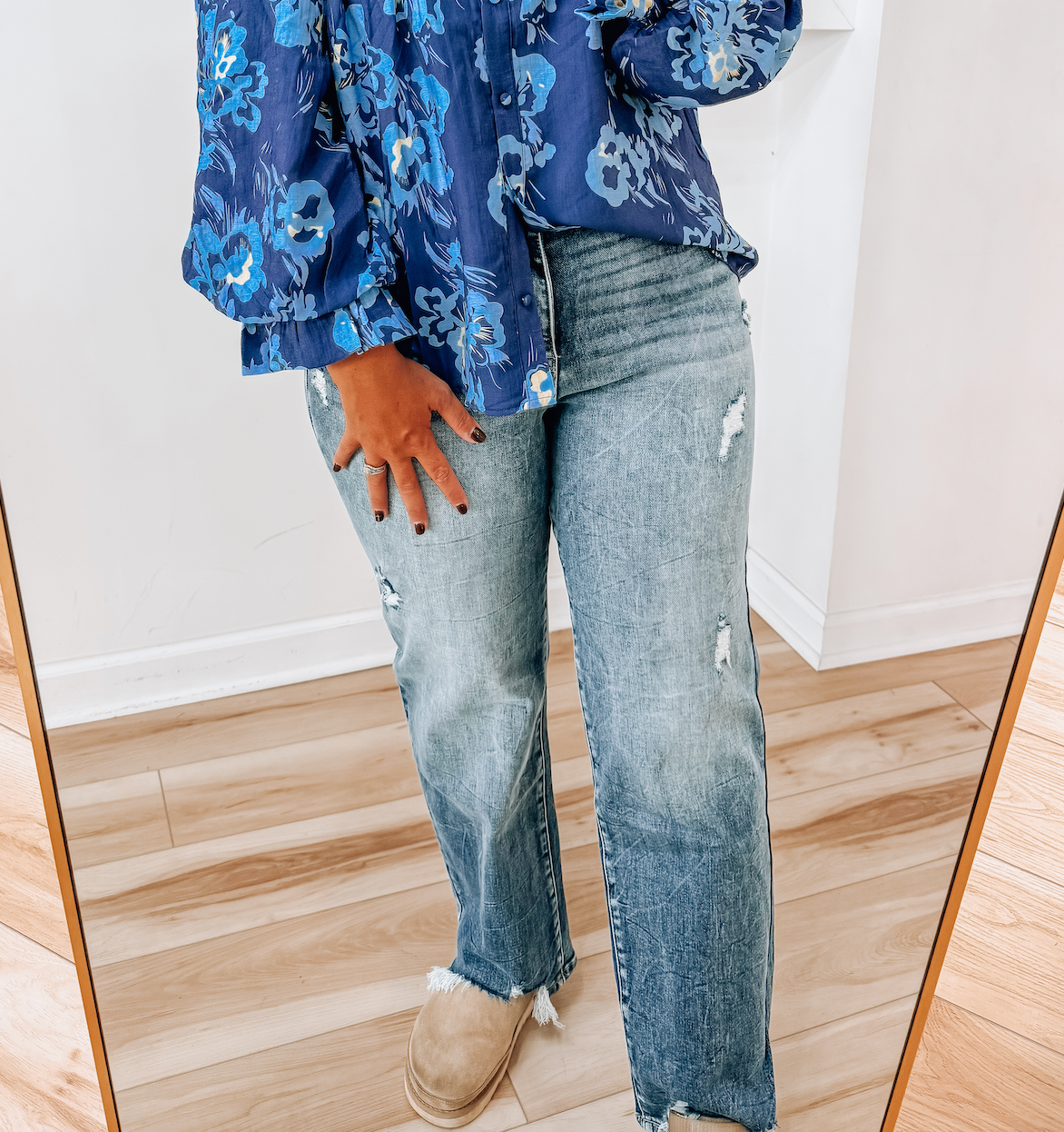 Marlee High Rise Stretch Slim Wide Dark Wash Jeans