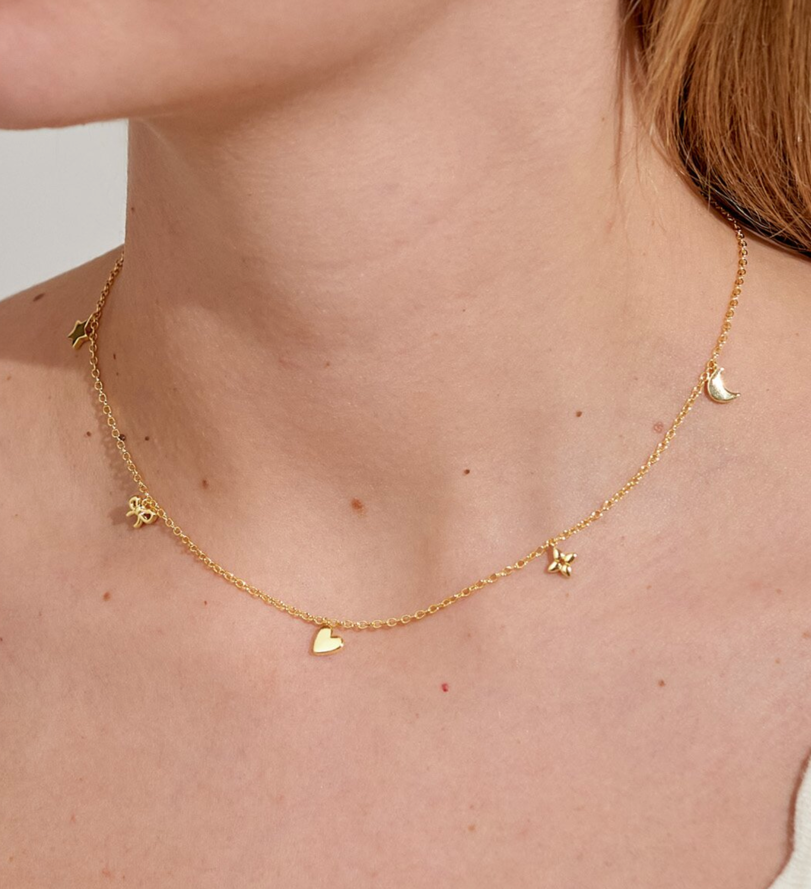 Designed with sweet gifting moments and shine-bright stacking in mind, say hello to Mini Charms - a fun and dainty collection bursting with color and a range of gold-tone plated, rose gold-tone plated, silver-plated, and pavé styles. Our Mini Charms Charm Necklace In Gold-Tone Plating features a classic clasp chain and, for the main event, five shimmering charms. The perfect little treat to be gifted alone or with other styles from the collection, it's guaranteed to make you fall in love with layering this season.