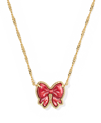 HALEY BOW SHORT PENDANT NECKLACE GOLD SCARLET RED MOTHER OF PEARL- Kendra Scott