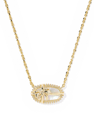 ELISA BOW SHORT PENDANT NECKLACE GOLD IRIDESCENT CRYSTAL IVORY ILLUSION- Kendra Scott