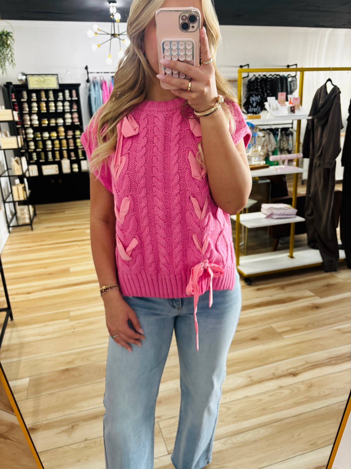 Discover timeless elegance with this cable knit sweater top, designed to become your go-to layering piece. The charming ribbon lace accent at the front elevates a classic silhouette with subtle sophistication. Crafted from lightweight knit fabric that's breathable and non-sheer, this unlined top offers comfort without bulk. Whether styled casually or dressed up, its versatile construction makes it the perfect addition to any wardrobe—a piece you'll reach for season after season.