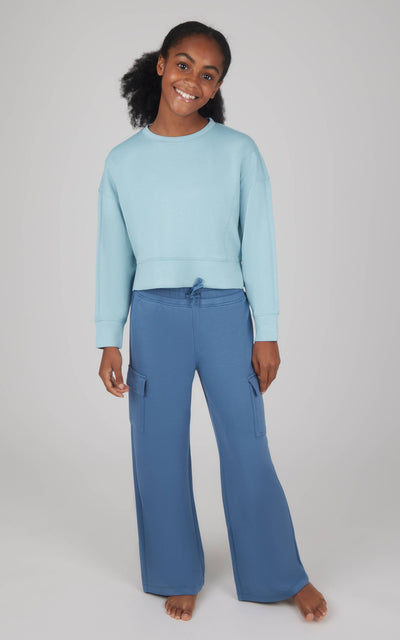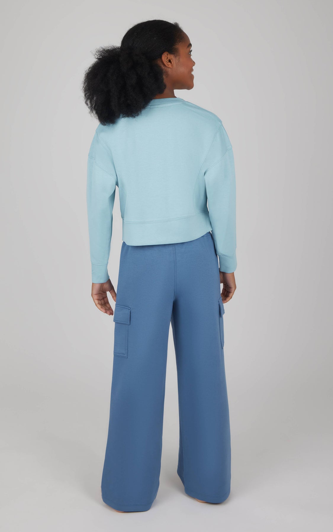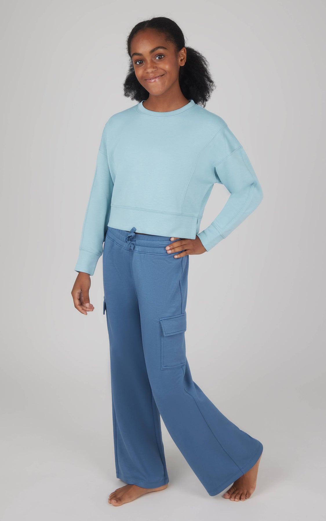 Girls Scuba Pullover and Wide Leg Cargo Pant Set- 2 PC SET! Perfect set for School, practice, and play! Great item for back to school - Soft light scuba fabric - Wide leg pants with Cargo details - Relaxed fit - Machine Wash Cold -